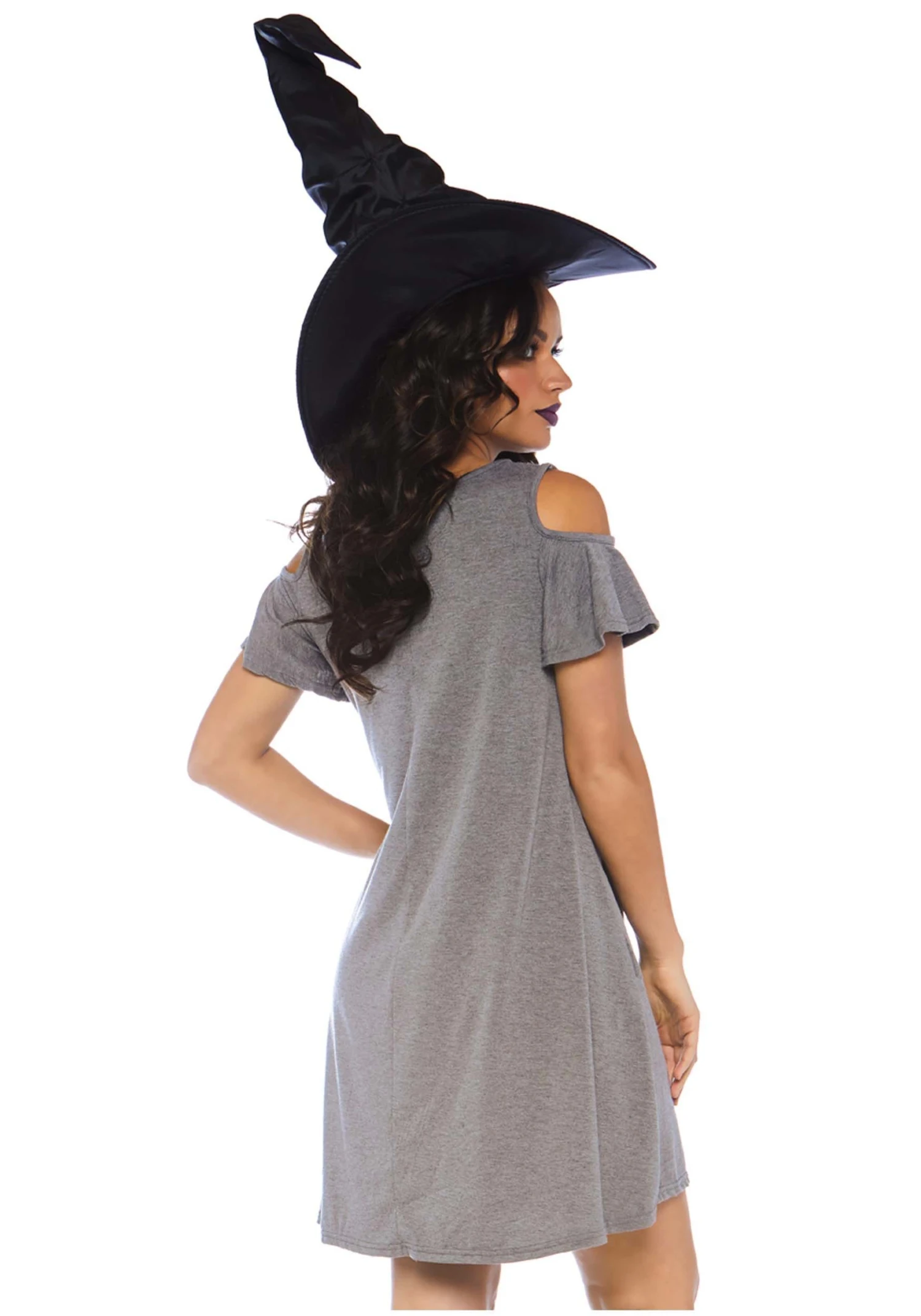 You’ll be ready to cast some spells. . . or simply order a pumpkin spice latte with class when you’re wearing this comfortable t-shirt dress with cold shoulder details. The front flaunts a printed logo with a sassy witch on a broomstick and words that proudly proclaim the title of “Basic Witch”. Because who wants to choose to be good or bad when you can be a beautifully basic witch!Â